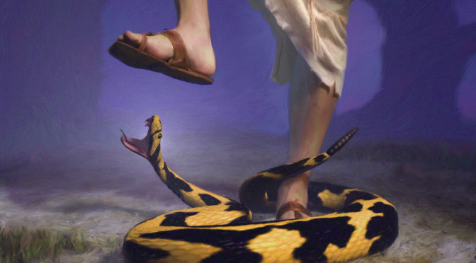 As well as being a graphic reminder of Genesis 3:15, it’s a very picturesque way of ‘prostrating’ – determinately laying down, dealing with – something that could have had him doing his own thing, taking Easy Street as it were and being diverted from God’s will.
