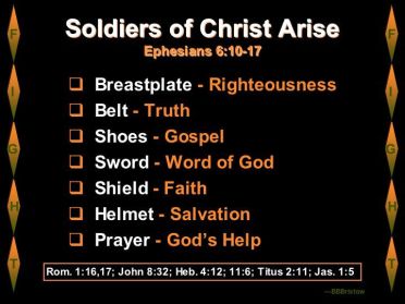 This is not only good Old Testament teaching, it is borne out in the New Testament: for example Paul’s letter to the Ephesians and its reference to the whole armour of God. Let’s be honest, every day there is a battle raging – as Paul says, ‘We wrestle… against spiritual wickedness…’ (Ephesians 6:12).