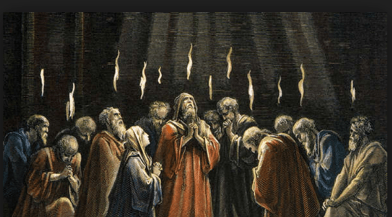 ‘Suddenly a sound like the blowing of a violent wind came from heaven and filled the whole house where they were sitting. They saw what seemed to be tongues of fire that separated and came to rest on each of them. All of them were filled with the Holy Spirit and began to speak in other tongues as the Spirit enabled them.’