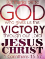 These lovely thoughts on victory drew me to the words of a hymn, ‘Oh victory in Jesus my Saviour forever, He sought me and bought me with His redeeming blood, He loved me ere I knew Him and all my love is due Him, He plunged me to victory beneath the cleansing blood’ (words and music Eugene M. Bartlett)