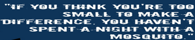 As the African proverb puts it, ‘If you think you’re too small to make a difference, you haven’t spent the night with a mosquito.’