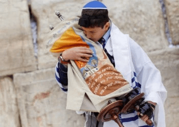 Right: A boy kisses the Torah at the Wailing Wall (Photo: Yonatan Sindel, Flash 90 – for the Ministry of Tourism)