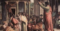 Jesus, the innocent, is condemned to crucifixion. Barabbas, the sinful, goes free.