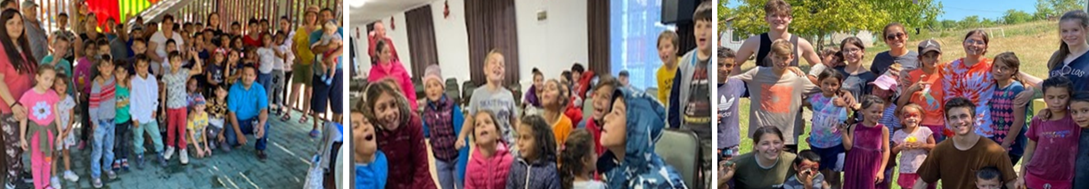 As well as regular gatherings, we treat them with special meals and outings… below Left: Tigmandru summer kids on a trip to the zoo Centre: happy kids. Right: Summer outreach camp (our daughter Sabrina, in black, top right).