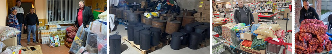 Left: Food and clothing Centre 1: Needed stoves Centre 2: YWAM Cluj’s Nieck (He comes from Holland) buying food Right: Packing potatoes