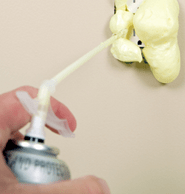 The foam went up into the gaps as planned. Emboldened, I sprayed more and more, filling every gap the technician had pointed out. The wet, sticky stuff got too heavy and began to fall. I caught it and pushed it back into the crevices!