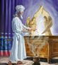 The only time anyone was permitted inside the inner sanctuary of the tabernacle, and later in the Holy of Holies in the temple, was on Yom Kippur. On that day each year the high priest would immerse himself in the ritual bath and change into priestly garments. He would then bring a bull, a ram and two goats before the people, sacrificing the bull to atone for his own sins and the sins of his family.