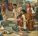 As for Tom, on that day when he was asking for money as usual – his general plea to everyone walking by – Peter suddenly fixed on him and said, ‘Look at us.’ What made him do this? It doesn’t seem that Tom was asking Peter and John anything out of the ordinary.