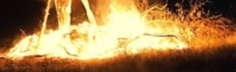Unexpectedly Maureen had suddenly noticed an unusual brightness on the windows and felt directed by the Lord to get up and check what it could be. Then she saw the source— the reflection of a long line of that gorge grass to the left on fire and heading towards those trees! Naturally it all looked very dangerous that dark night… the spreading blazing fire threating to come our way!