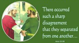 In Acts 15:36-41 we read of a big argument between Paul and Barnabus over the latter’s choice to bring Mark along with them in the next stage of their missionary enterprises. But Paul didn’t want Mark to accompany them as he had dropped them back in Pamphylia (Acts 13:13)… and now there was a division of these two church leaders.